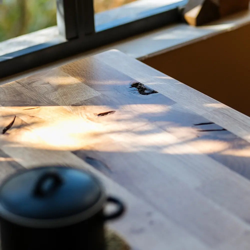 天板には天然オークの無垢材を使用。
