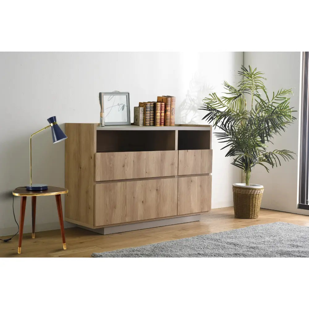 [80cm幅][120cm幅]北欧風リビングチェスト グレージュ×ナチュラル 日本製