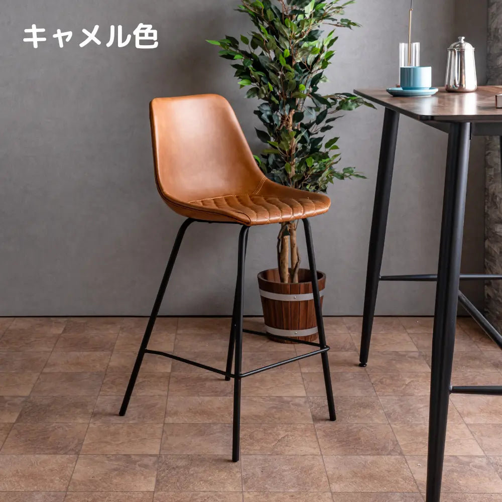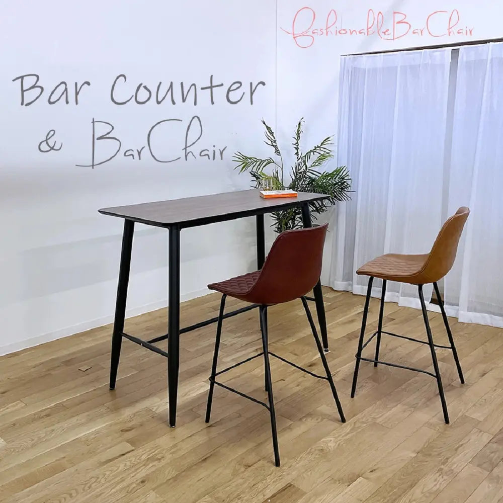 [120cm幅]スタイリッシュなバーカウンター3点セット。メラミン天板テーブル×バイキャストレザー張りチェア
