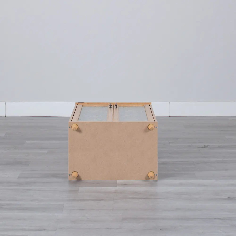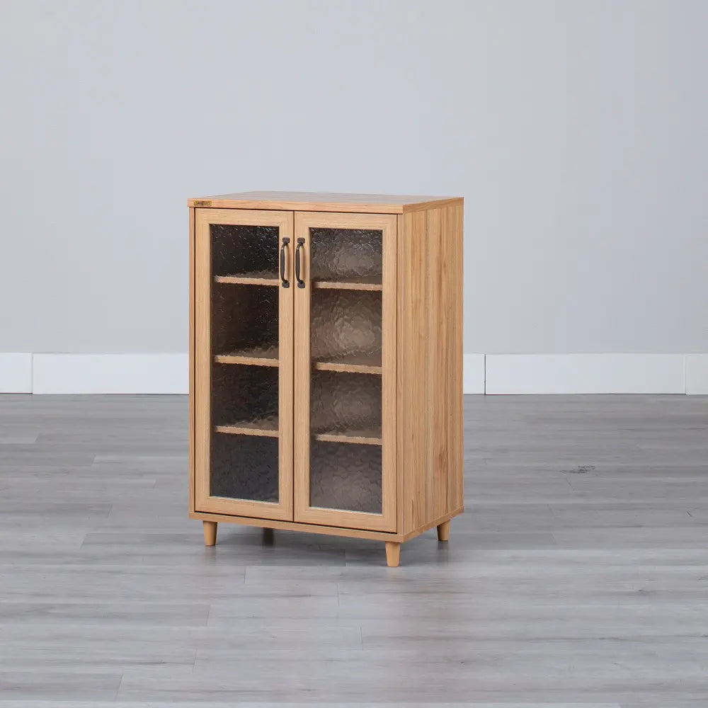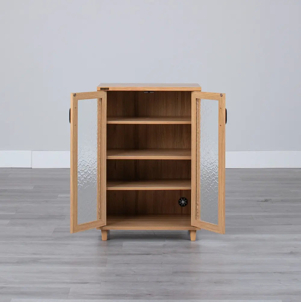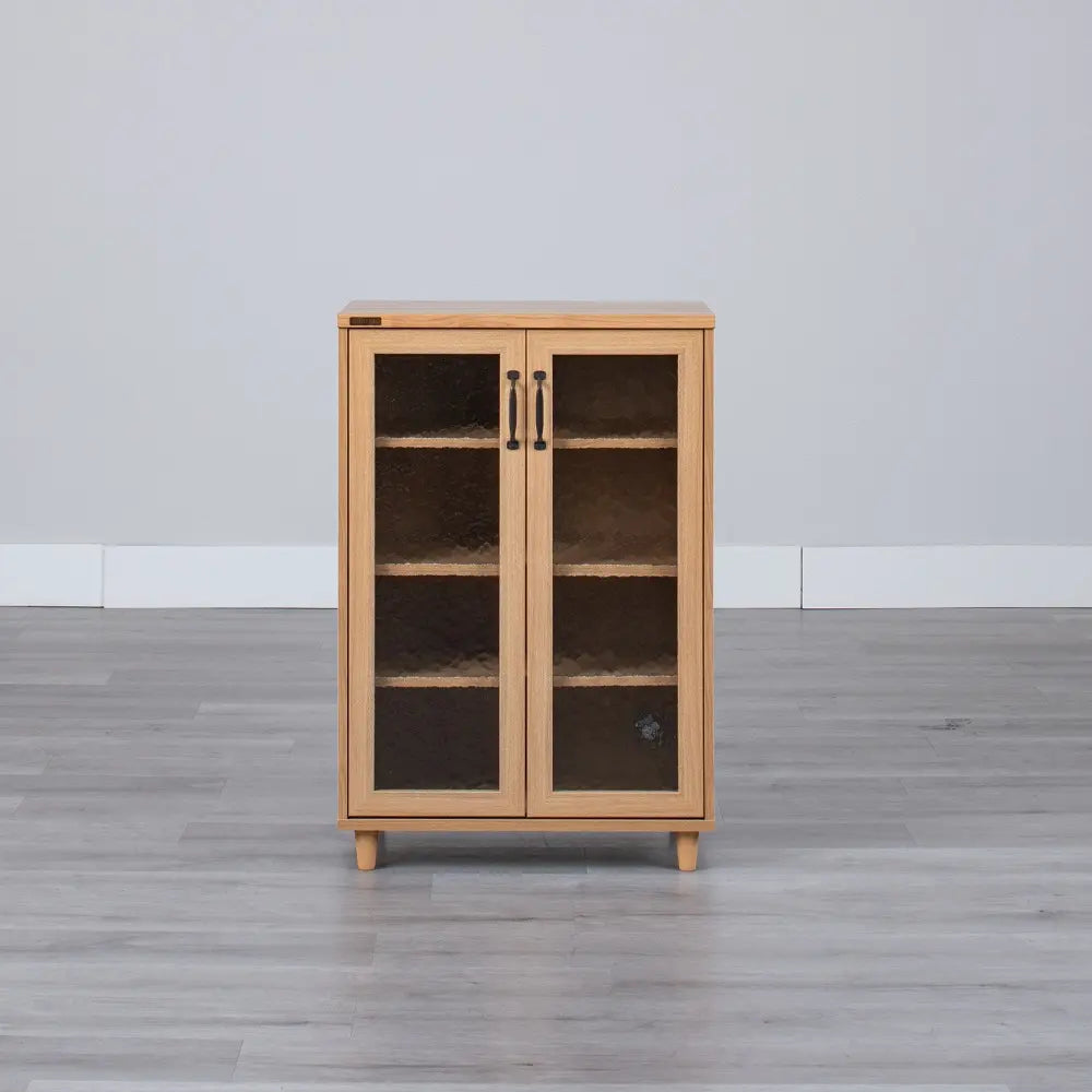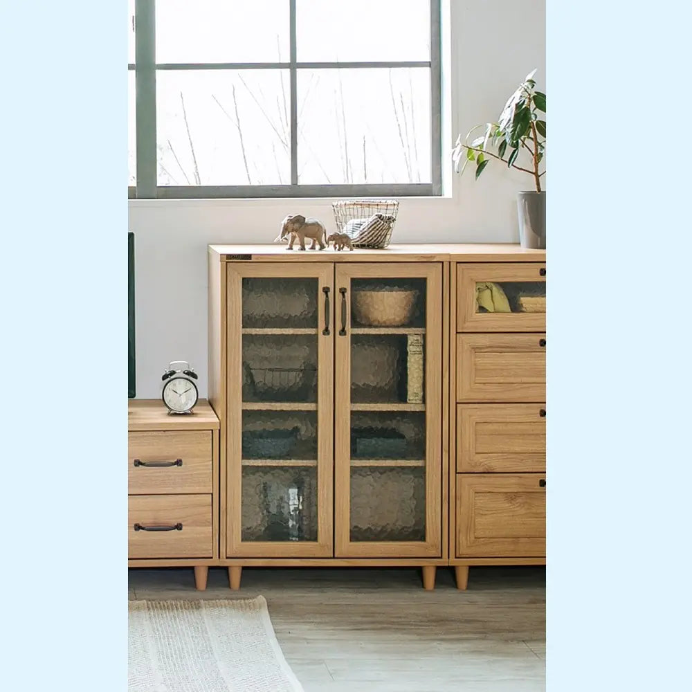 すりガラスと木目の組み合わせが美しい、レトロモダンなシンプルキャビネット。