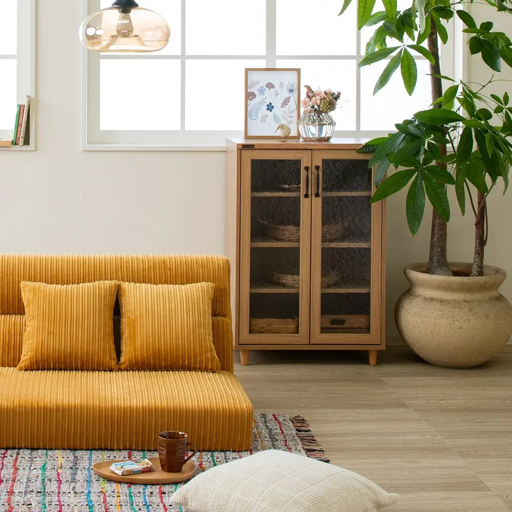[60cm幅]ナチュラルな木目調 レトロな雰囲気のキャビネット【お客様組立】